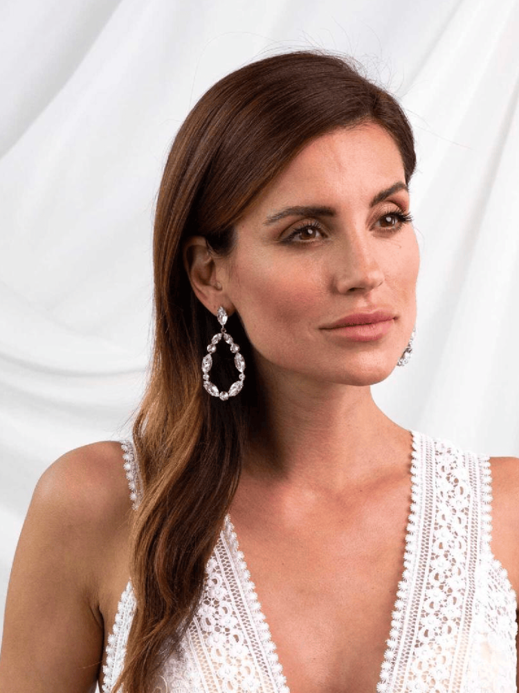 Die Jane-Ohrringe sind sehr trendy. Diese schönen, auffälligen Ohrringe sind aus Swarovski-Kristallen gefertigt. Die Ohrringe sind mit Rhodium überzogen.