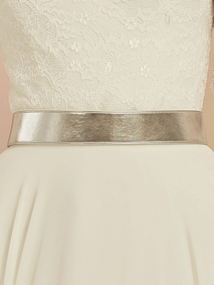 Dieser schöne Taillengürtel hat einen Metallic-Look und ist leicht glänzend. Der Gürtel ist mit Druckknöpfen verziert und hat eine Breite von 3,5 cm. Dieser Gürtel passt perfekt zu dem Bianco Evento Ravenna Rock Ivory und dem Bianco Evento E340 Brautpullover.
