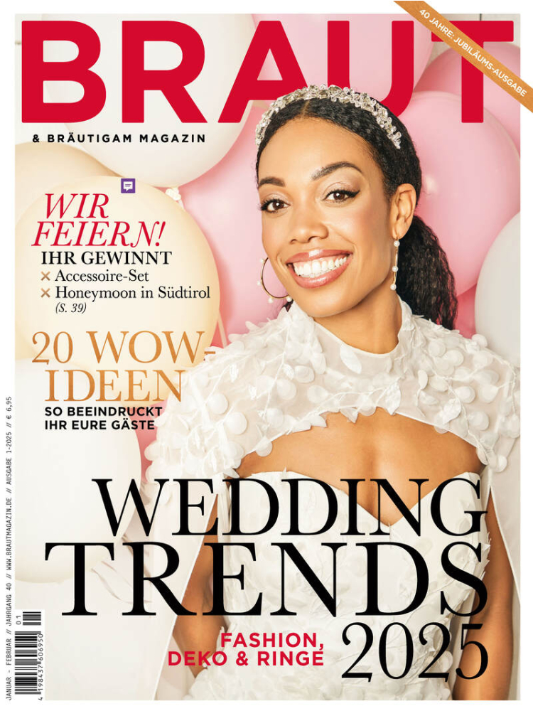 Lasst euch inspirieren – die neueste Ausgabe der Braut & Bräutigam Hochzeitszeitung ist da! Diese März-April 2025 Edition bietet euch frische Ideen, aktuelle Trends und wertvolle Tipps für eure Traumhochzeit. Ob Brautkleid, Trauringe oder Dekoration – hier findet ihr alles, was das Hochzeitsherz begehrt.