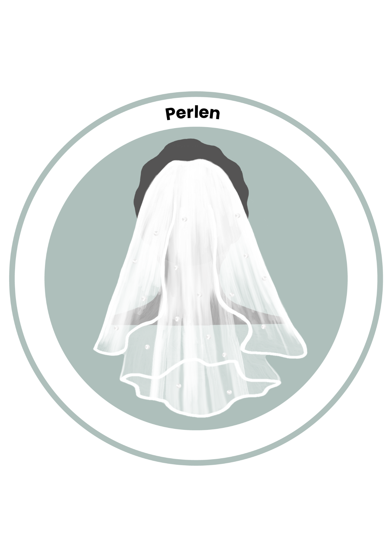Perlen: Perlen auf dem Brautschleier stehen für Reinheit und Liebe – perfekte Symbole für den Hochzeitstag. Sie können fein auf dem Tüll verteilt oder entlang des Randes eingearbeitet sein. Im Licht erzeugen die Perlen einen sanften Glanz und verleihen dem Schleier ein magisch-elegantes Finish. |
