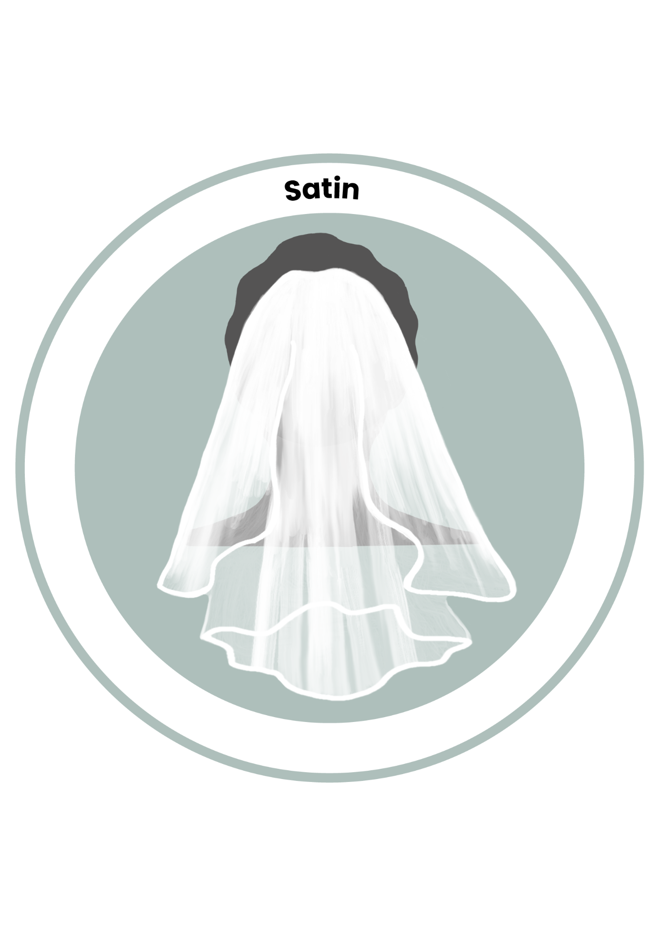Satin: Brautschleier mit einem Satinsaum verleihen deinem Look einen Hauch von Luxus. Das weiche, glänzende Material sorgt für ein elegantes Finish entlang der Kanten. Sobald Licht auf den Satin fällt, entsteht ein dezenter Schimmer, der die Bewegung des Schleiers besonders schön zur Geltung bringt. |