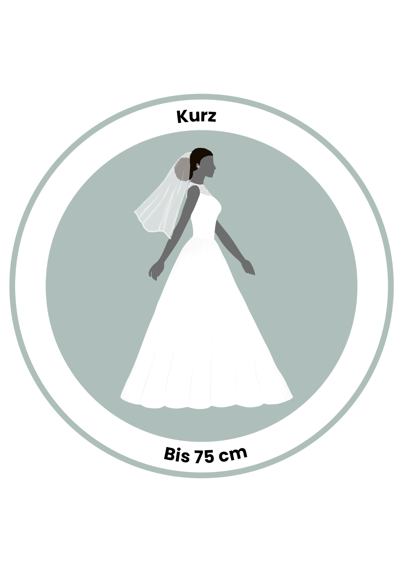 Kurz: Ein kurzer Schleier ist meist nicht länger als 80 cm und reicht nicht über den Ellbogen hinaus. Ein zweilagiger Schleier hat häufig diese Länge und gilt daher als klassische Wahl. Da er den Blick nicht auf sich zieht, bleibt die Aufmerksamkeit auf dein Kleid gerichtet – ideal bei auffälligen Details wie einer Schleppe, einem Rückenausschnitt oder besonderem Ausschnitt. |