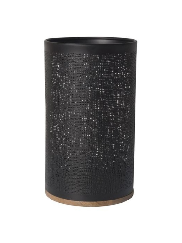 Aus warmem Holz gefertigt und in elegantem Schwarz vollendet, lässt die gemusterte Lou-Laterne Kerzenlicht sanft streuen. Mit ca. 15,4 x 26,3 cm (15 x 25 cm) ist sie ein elegantes, tragbares Dekorstück für Gartenwege, den Esstisch oder einen intimen Kaminsims.