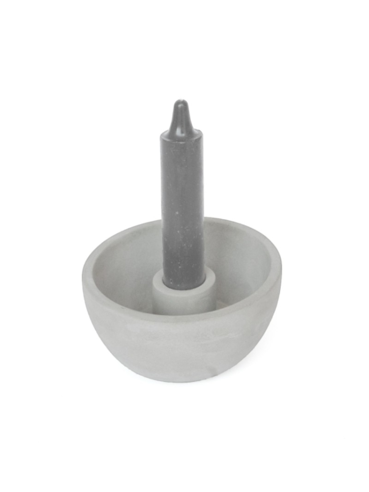 Ein skulpturales Erinnerungsstück von Leeff, das Tische und stille Ecken mit moderner Romantik und intimem Hochzeitscharme verschönert. Aus warmgrauem Zement gefertigt, hält es eine hohe Stabkerze in einer minimalistischen, schalenartigen Silhouette; die matte Oberfläche verströmt eine sanfte Ruhe und umrahmt gemeinsame Augenblicke mit dezenter Eleganz.