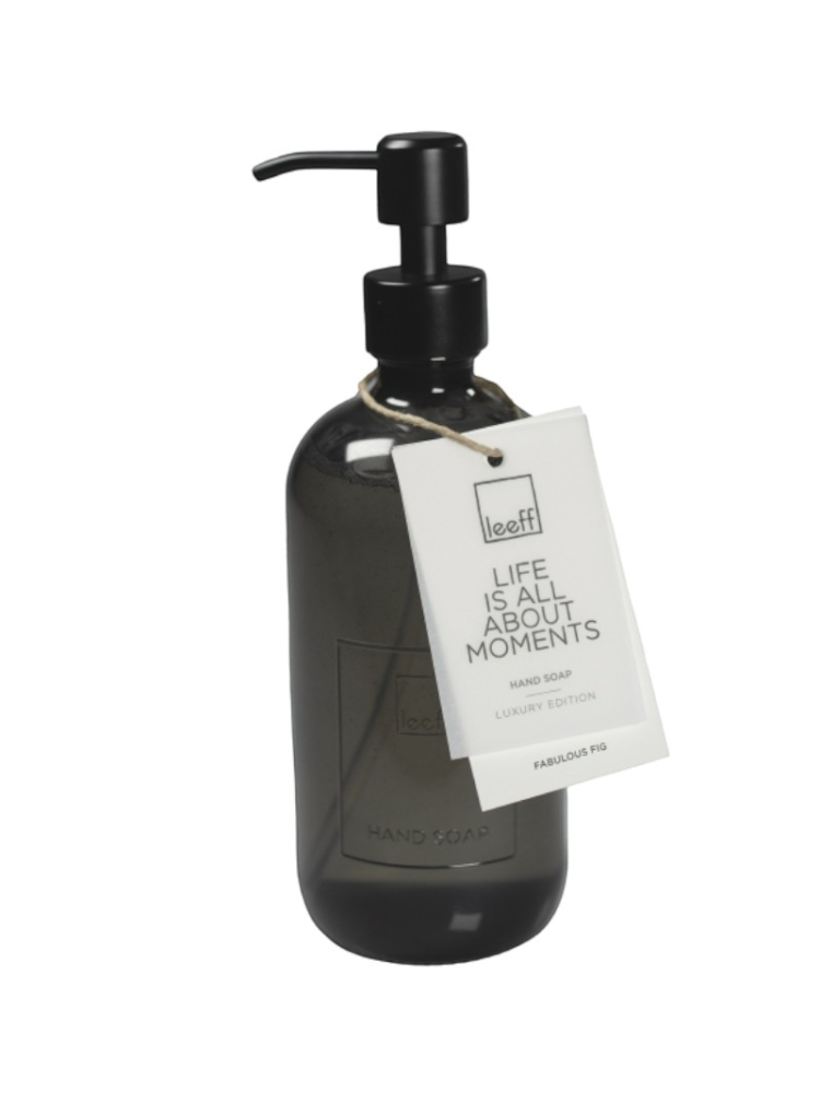 Entdecke die Leeff 18372 Hand Soap Glass Bottle - Fabulous Fig Grey: eine edle Handseifenflasche aus grauem Glas, die Alltägliches zu einem kleinen Ritual verwandelt.