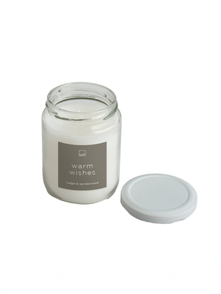 Erleben Sie die Leeff 18617 Jar Candle L - 'Warm wishes' White, eine elegante Kerze im Glas, die mit ihrem sanften, behaglichen Licht besondere Hochzeitsmomente stimmungsvoll begleitet.