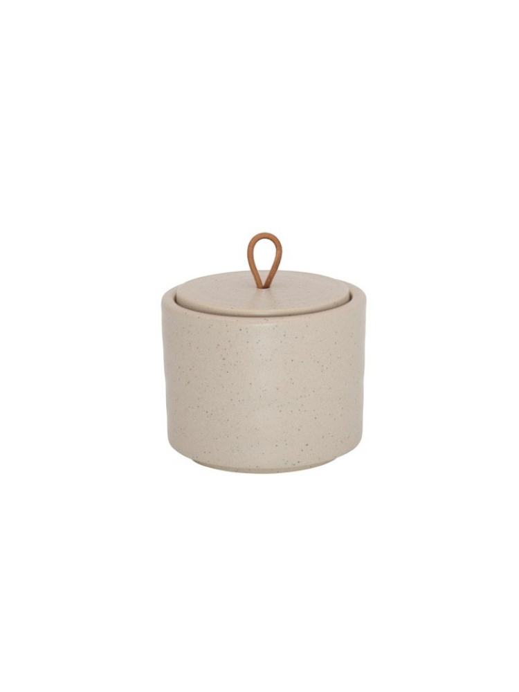 Ein stilvolles Geschenk für die Küche: Die Vorratsdose Silke L von Leeff aus Keramik in warmem Taupe verzaubert mit ihrer zeitlosen Ausstrahlung. Der Deckel mit Schlaufe ist ein hübscher Hingucker. Ideal für Lieblingszutaten, von Kaffee bis Kekse, und in zwei Größen erhältlich.