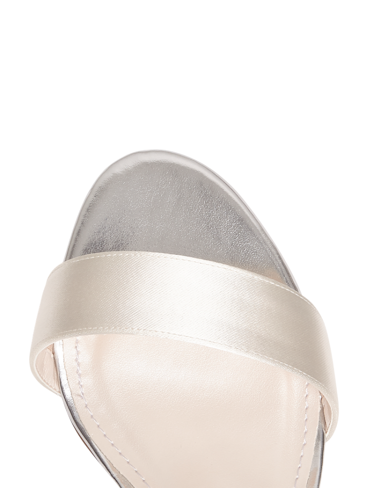 Die Rainbow Club Margot Brautsandalen sind die perfekte Mischung aus moderner Brauteleganz und mühelosem Komfort. Aus luxuriösem Ivory-Satin gefertigt, überzeugen sie mit einer cleanen offenen Zehenpartie, einem feinen Fesselriemchen und einem stabilen 6,5 cm Blockabsatz für den ganzen Tag.