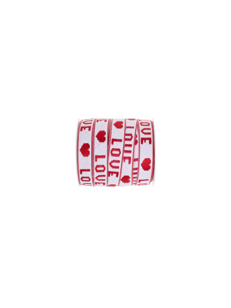 Romantic red LOVE ribbon SX-8758, 10 mm wide and 5 meters long. Ideal for weddings, bridal crafts, or gift wrapping.