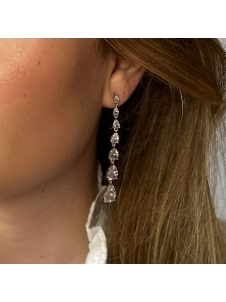 Moderner Glamour trifft Vintage‑Charme: Die Ella‑Ohrringe aus der Sally Jane Bridal Kollektion sind mit kaskadierenden Zirkonia besetzt und schimmern bei jedem Schritt. Das feine Tropfen‑Design verleiht deinem Braut‑ oder Festlook den perfekten, eleganten Abschluss.