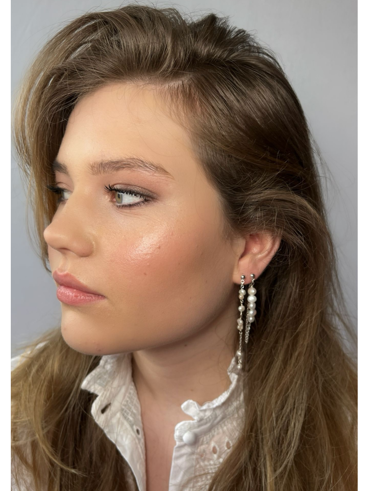 | Pflegehinweise | Make a statement with our silver-plated brass earrings, finished with freshwater pearls. These long earrings are bold yet elegant, perfect for adding a unique and modern touch to your look. Also available in gold. |