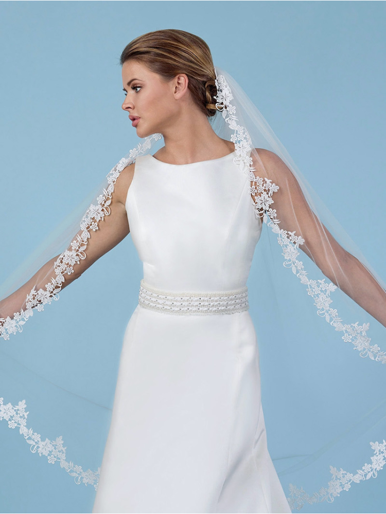 Schleier aus Soft-Tüll mit gehäkelter Blumenspitze.