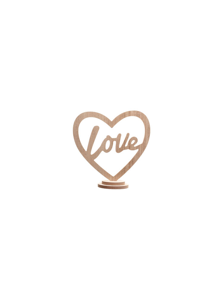 Wooden LOVE stand SX-8974 by Santex. Heart-shaped, natural wood décor – perfect for weddings, receptions, or romantic displays.